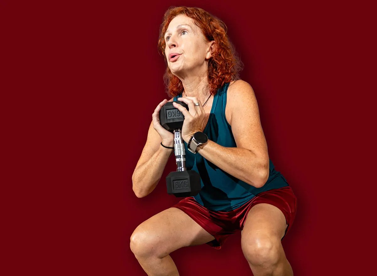 “This is a solid all-around strength exercise for your lower body. It also requires you to engage your upper body muscles to hold the dumbbell right in front of your chest, so it gets a lot done in a short period of time,” Angelino explains. “You can start with body weight to work up to using a dumbbell if you need to.”