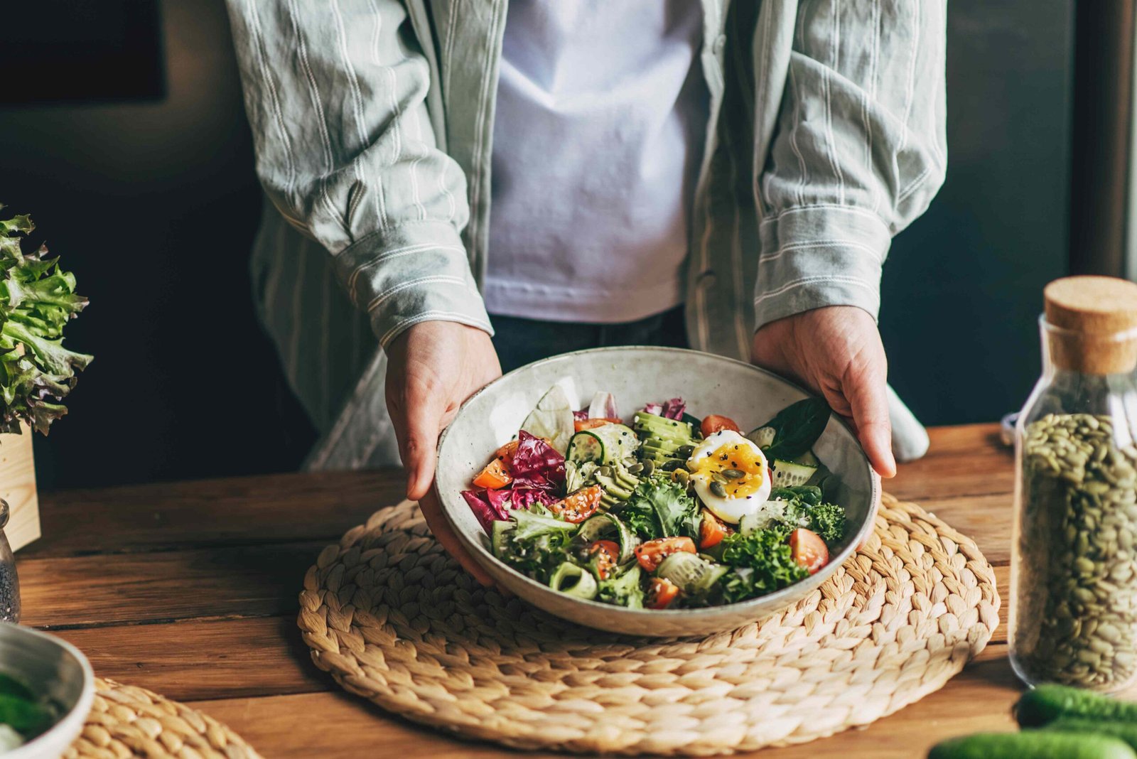 - Add lean proteins and healthy fats: When it’s time to add protein to your plate, choose lean options like fish, chicken, eggs, and low-fat yogurt instead of processed meats. Opt for fats from foods like avocados, nuts, seeds, and oily fish, while limiting saturated and trans fats.