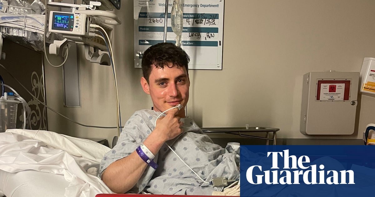 ‘I’d just cheated death’ … James Greig in hospital in New Orleans. Photograph: Courtesy of James Greig