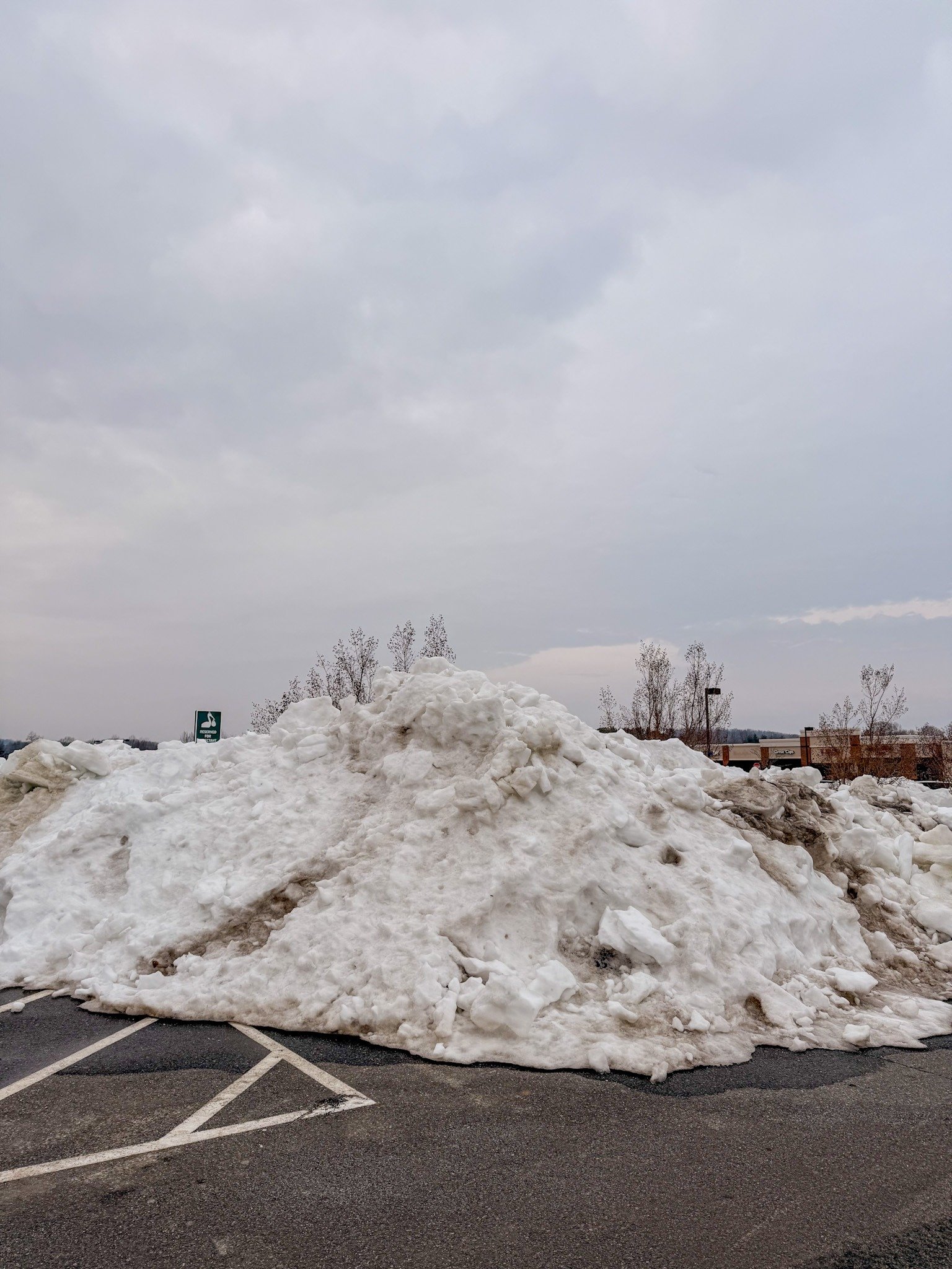 After missing an entire week of school, plus a few days of two-hour delays, we STILL have mountains of ice everywhere here. This is what all the parking lots look like: