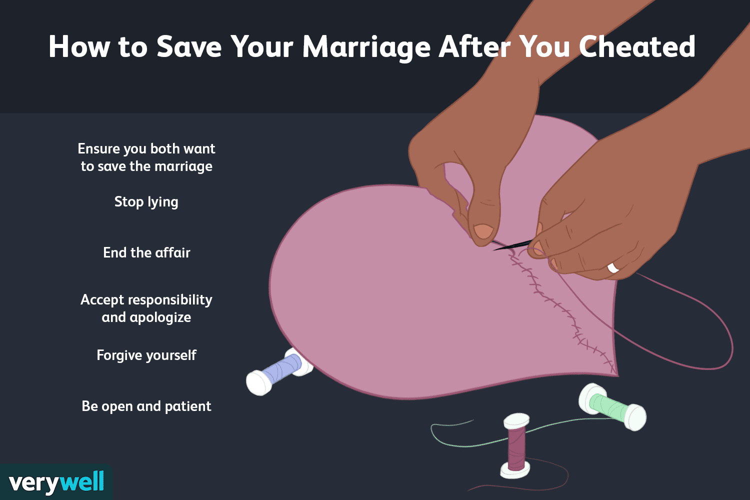 But repairing a relationship after infidelity can only happen if you truly regret your decision to cheat. If you decide to confess to your partner, make sure you are doing it for the right reasons, not just to ease your own guilt.